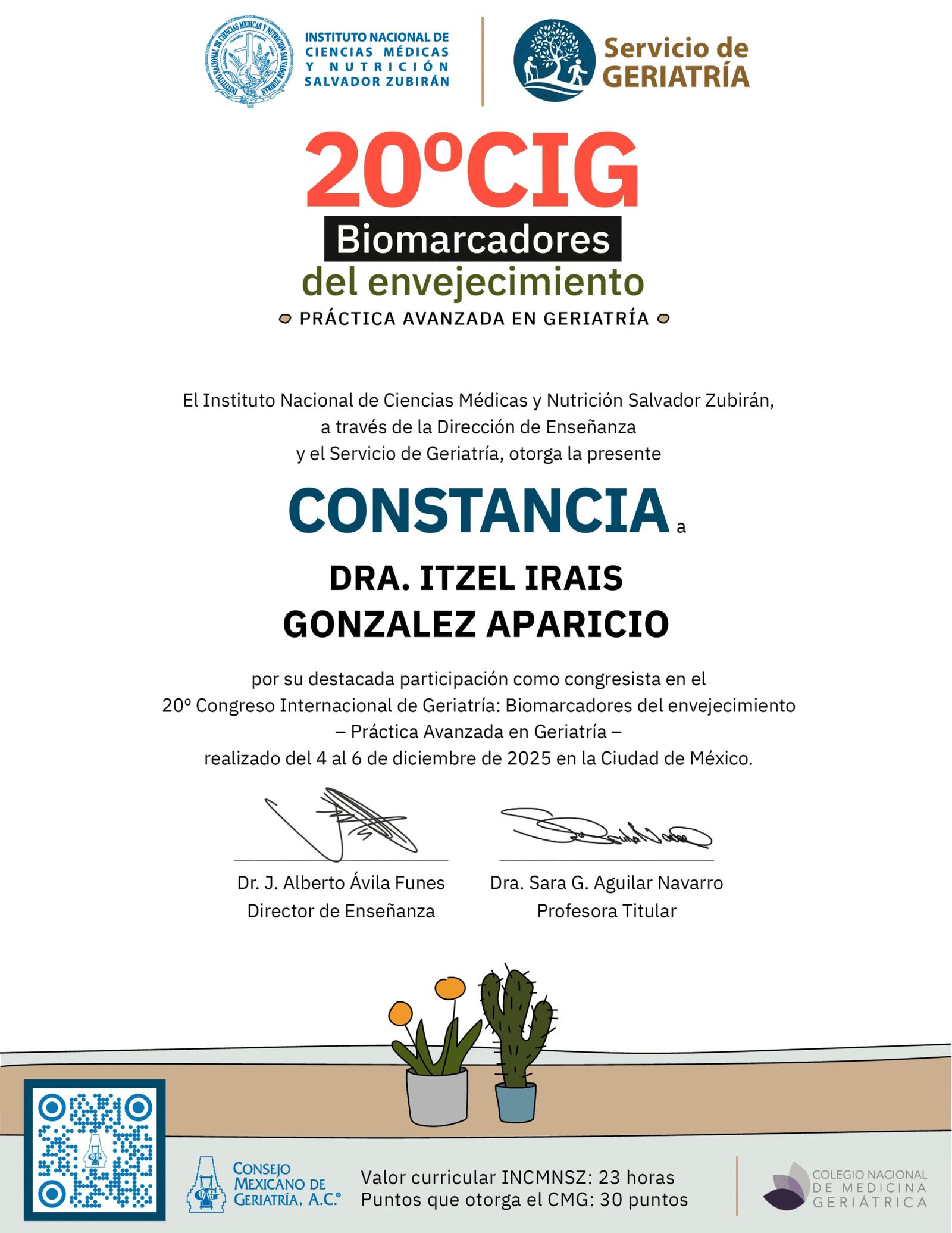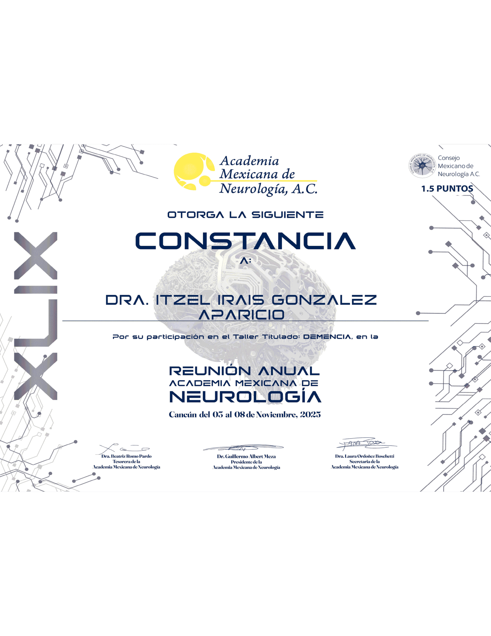 - Alta Especialidad en Geriatría Neurológica – Instituto Nacional de Ciencias Médicas y Nutrición “Dr. Salvador Zubirán”.