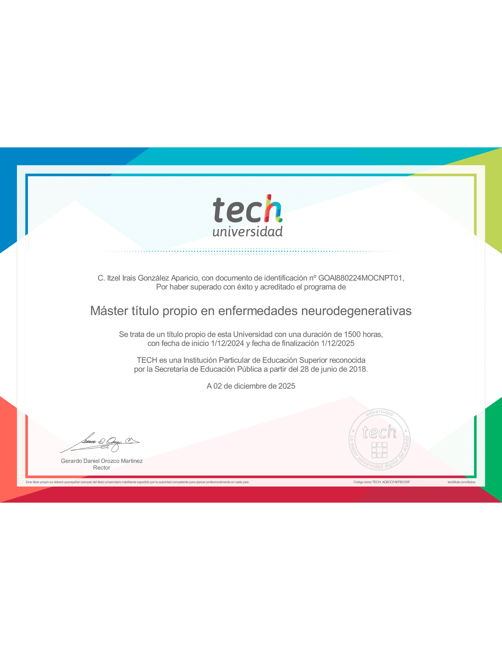 - Máster en Enfermedades Neurodegenerativas – Universidad TECH, Madrid.